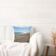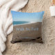 Bible Verse Quote throw pillows. This pillow features the bible verse, "walk by faith" from Corinthians. Inspirational beach scene background with footprints in the sand.