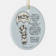 Lightweight, smooth, pure white ornament with nice sheen. Perfect size to be seen from across the room ... and to attract closer inspection! Price was great for ordering enough for the whole family! Clear, bold black design just as requested. Matches the order exactly. Just so nice!