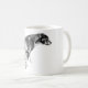 A sitting dog, captured in delicate black-and-white detail, radiates quiet loyalty. It feels like autumn companionship in every sip, blending Halloween mood with homely calm.