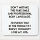 NewParkLane - Funny Mousepad, with sarcastic quote: "Don't mistake this fake mile and professional boy language. I'd punch you in the throat if I knew I wouldn't lose my job', a in modern typography.