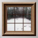 Faux window overlooking falling snow and snow covered trees. For more fake window posters visit the rest of this shop.