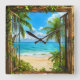 Fake Window Summer Beach Home Décor 🌴🌊🕰️ Square Wall Clock