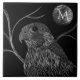 Black and white artwork of a peregrine falcon with full moon and tree branches. Use the text template to add an initial or monogram to the moon. ♡ Idyllfire