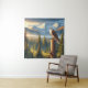 This is an illustration that shows a falcon on a pole. The falcon is surrounded by nature with trees, mountain ranges on the background. This tapestry behind your bed is like having the outdoors within your room.