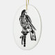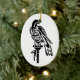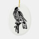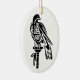 A stylized black and white graphic of a falcon standing on a block perch. A perfect ornament for the falconer in your life.