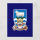The first flag of the Falkland Islands was adopted on 29 September 1948. It was a Blue Ensign with the Union Flag in the canton and the coat-of-arms superimposed upon a white disc. In 1999, the size of the arms was increased and the white disc removed to create the current flag.