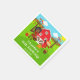 This cute and fun napkin features a dark skin girl with a basket of apples and a scarecrow and crow. In the background is a bright red barn, a brown picket fence, trees, sunshine, pumpkins and baskets of corn and apples. The text combines bold and sans serif fonts for a stylish and modern look. This is perfect for an autumn fall themed birthday party.