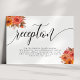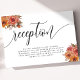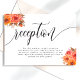 Enhance your wedding stationery with this elegant reception enclosure card, featuring a stunning fall-inspired design. Adorned with rich burgundy and autumn floral accents, this card perfectly complements your autumn wedding theme. Ideal for providing your guests with essential reception details, the stylish script and vibrant colors create a memorable and beautiful touch. Customize with your specific information to ensure a seamless and sophisticated celebration.