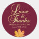 Fall Autumn Burgundy Gold LOVE & THANKS Wedding Classic Round Sticker