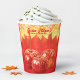 Serve up festive drinks in these vibrant autumn-themed paper cups featuring glossy red caramel apples coated with sprinkles and dripping with sweetness. Golden leaves and soft white dots cascade from the top, giving the design a cozy fall feel that’s perfect for a child’s seasonal birthday bash or orchard celebration. A delightful touch for apple lovers and warm harvest parties.