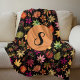 Fall Autumn Leaves Pattern on Black with Monogram Fleece Blanket