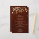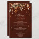 Elegant rustic country fall wedding menu featuring brown, red, orange, green eucalyptus leaves. Please contact me for any help in customization or if you need any other product with this design.