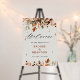 Elegant rustic country fall wedding welcome foam board featuring brown, red, orange, green eucalyptus leaves. Please contact me for any help in customization or if you need any other product with this design.