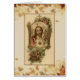 Beautiful traditional vintage image of the Sacred Heart of Jesus with the lamb on his shoulders. Autumn fall leaves are in the background.