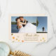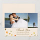 This 5x7 wedding thank you flat invitation card has a fall / autumn season theme. At the bottom, there are leaves and acorns scattered about with a place for you to personalize the thank you message. At the top, you can easily customize this with two of your photos from your wedding reception.