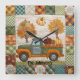 Personalized Rustic Wall Art for your Home. This Farmhouse Style Wall Clock has Historic Charm with its Old Farm Truck hauling Farm Grown Pumpkins. It's Country Chic with its Patchwork Quilt appearance. The Quilt is Faux and Simulated. Personalize this Rustic Wall Clock to your Hearts content! Just Add Your Own Name!
