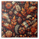 Fall Autumn Plaid Leaves Orange Black Pattern Ceramic Tile