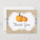 Fall Autumn Pumpkin Orange Gray and White Burlap Thank You Card