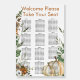 Seating chart for 120 guest. You can easily edit seating charts if you need less. Visit our Fall Rustic Brown Floral collection for matching stationery and party goods. Everything you need to throw a stylish party. Invitation, thank you cards, welcome sign, backdrop banner, baby shower games, candy wrapper labels, posters and more.
