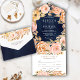 Fall Autumn Rustic Earthy Floral Navy Blue Wedding All In One Invitation