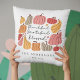 A cute pillow with pumpkins and the phrase "Thankful Grateful Blessed" - personalized with a family name and established date.