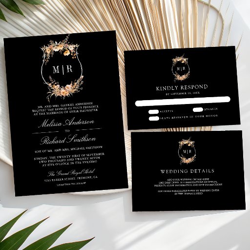 Fall Wildflower Crest Black Wedding Designed by Shabbir D