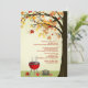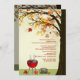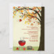 A fall, Oktoberfest, barbecue invitation for your backyard party. The design features a tree with autumn leaves, a grill and a barrel of beer. The card is easy to customize with your wording, font, font color, paper shape options and choice of six paper types.