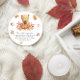Celebrate with this teddy bear themed baby shower party! Watercolor cute teddy bear with an autumn pumpkin in its paws sits on autumn foliage. Matching items available.