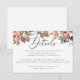 Share important information with your guests using this elegant botanical wedding details card featuring soft watercolor leaves and delicate berries. The airy minimalist layout paired with modern script typography creates a timeless and romantic look that pairs beautifully with nature inspired wedding stationery. This enclosure card is perfect for sharing helpful guest information such as hotel accommodations, room blocks, transportation details, directions, wedding website links, weekend schedules, or dress code guidance, keeping everything clear and organized for your celebration. The watercolor foliage and berry accents create a warm, organic style that works beautifully for garden, rustic, woodland, vineyard, countryside, and other outdoor weddings, including romantic fall and autumn celebrations. This details card helps create a cohesive wedding suite while making sure guests have all the information they need for your special day.
