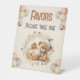 Fall kids Birthday party Favors Pedestal Sign with an adorable teddy bear in a hat, pumpkins and balloons. The soft pastel colors, classic beige, grey and light brown give it a cozy autumn feel. Easily personalize the text. - Kate Eden Art