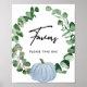 Fall Greenery Blue Pumpkin Favors Baby Shower Signs