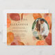 For your Fall Boho Wedding, choose this unique minimalist wedding invitation template featuring sleek, classic lettering and one of your favorite engagement photos in an oval frame, on a delicate, colorful autumn leaves background, with earthy autumnal copper shades from light butter yellow to beautiful terracotta and burnt oranges.
