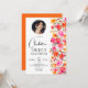Fall boho red orange floral photo sweet 16 birthday invitation featuring an original and pretty floral hand painted red, burnt orange, pink autumn flowers with brown and green foliage on the side. Featuring a photo in a circle with a modern stylish script font typography, when rustic boho meets modern elegance party celebration