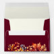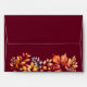 Add a festive seasonal touch to your wedding suite with this elegant fall envelope, featuring a rich burgundy background and watercolor autumn leaves in vibrant shades of orange, red, and gold. The back flap showcases a seamless design without a return address—ideal for hand-delivered invitations or custom addressing. Perfect for rustic and romantic fall weddings.