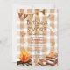 Featuring a warm neutral gingham background, toasty marshmallows, a glowing campfire, and stacked s’mores, this charming design is perfect for a camping-themed birthday, outdoor fall party, or backyard bonfire celebration.
