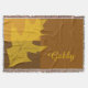 Customize the seasonal Fall Color Block Throw with a personal name to create a unique keepsake gift. This natural custom autumnal blanket features a golden yellow oak leaf design with a brown tone color block background. Perfect for a tree hugger.