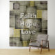 Fall Color Blocks Cloth Tapestry. Gorgeous modern and contemporary pattern, Autumn Greys, and green mottled color blocks. Set the stage for the season. Keep the Quote "Faith, Hope, Love" or add your own phrase or monogram.