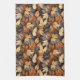 Autumn theme kitchen towel featuring dense fall colors, in a beautiful watercolor pattern of autumn leaves in warm shades of brown, gold, and earthy tones. It's the perfect accent to bring the cozy, abundant feeling of autumn right into your kitchen.
