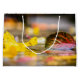 After the rain stopped on this September morning, I decided to visit a pumpkin farm. Outside there were some wooden tables and benches, still wet from the rain. A few shiny leaves were laying on the table. The sun started to show up through the clouds, briefly illuminating the table, allowing for these fall colors to be beautifully rendered.