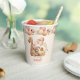 Autumn beary 1st Birthday baby Paper Cups with cute teddy bear in a pink hat, pumpkins, fall plants, big wooden number one and balloons. Easily personalize the name. Please visit the store for the full line of products that are available - Kate Eden Art