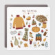 Fall essentials hand drawn autumn objects with sweater, scarf, blanket, leaf, backpack, coffee, glint wine, pumpkins, pumpkin pie, candle, boots, hat, mushrooms, berries. Cozy handdrawn Thanksgiving illustration for scrapbook, stationary, gift and greeting card, t-shirt design. Fall car magnet for living room, nursery, kids room, bedroom and entryway decor. Autumn bumper magnets with aesthetic fall objects in orange, red, brown and green colors. Square fall magnet with harvest objects, warm clothing, autumn food, October leaves and other autumn cozy stuff. Get a unique fall magnet as a fall Thanksgiving gift and farmhouse housewarming gift for kids and her now!