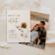 Modern Script Save the Date Card. Designed with a beautiful watercolor Gold Champagne Bottle. Matching items in our store Cava Party Design.