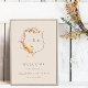 A beautiful fall wedding welcome poster featuring a hand sketched shield crest adorned with watercolor terracotta peach flowers and leaves, with your monogram in grey in the centre all on a neutral background. Personalize further with your names and wedding date. Available as a digital download.