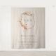 A beautiful fall wedding welcome fabric tapestry featuring a hand sketched shield crest adorned with watercolor terracotta peach flowers and leaves, with your monogram in grey in the centre all on a neutral background. Personalize further with your names and wedding date.