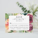 An elegant RSVP card with a built-in meal selection, featuring a vibrant watercolor floral border in burgundy, blush, and orange on a natural kraft background with a crisp white text panel. The layout makes it easy for guests to confirm attendance and choose their dinner entree while coordinating with your autumn kraft wedding suite. All text is fully editable — customize the reply-by date, entree options, and wording to fit your menu.
