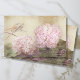 Muted, dusty pink hydrangeas with a warm cream stucco wall, twig background and foliage celebrate the end of summer with their softly faded colors and warm fall color palette. There is companion version of this design that does not have the handwritten script ephemera. Painted in oil pastels by internationally licensed artist and designer, Audrey Jeanne Roberts, copyright.