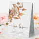 Fall Floral Table Tent Sign. This elegant and rustic wedding open bar sign features hand-painted watercolor burnt orange and terracotta leaves, cream and beige dahlias, and beautiful rust-colored roses perfect for a fall or autumn wedding!