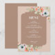 Bring refined elegance to your celebration with the Fall Floral Wedding Menu – a fresh, timeless design that pairs the richness of deep brown with the delicate beauty of white and coral blooms. The contrast is striking yet graceful, creating a look that feels both classic and modern.