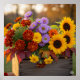A high-quality graphic showcasing a beautiful and diverse collection of fall flowers. The vibrant colors and natural setting make this a perfect design for a variety of products, bringing the warmth of autumn indoors.