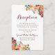 Let your guests know your reception details with our fall floral reception inserts with orange, burgundy, cream, and pink flowers. The wording is completely customizable - if you need to change the font, font color, size or the placement of the text boxes just click on the "Click to customize further" button to change those things. Be sure to check out our large selection of coordinating items by browsing the Fall Flower Wedding collection!